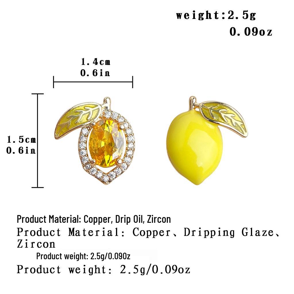 Enamel Drip Oil Lemon A & B Cubic Zirconia Stud Earrings – Sweet, Fresh & Versatile Silver Needle Jewelry