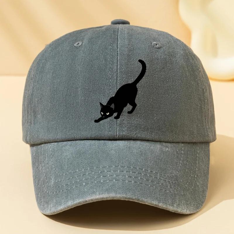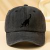 Classic European And American Style Black Cat Printed Baseball Cap for Men, Featuring a Washed Vintage Design, Adjustable Size,