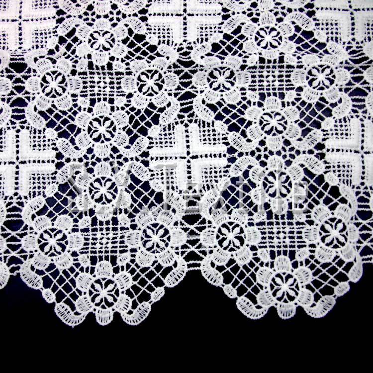Tejido de encaje soluble en agua, bordado de seda de leche de ancho completo, tela de bordado hueco tridimensional