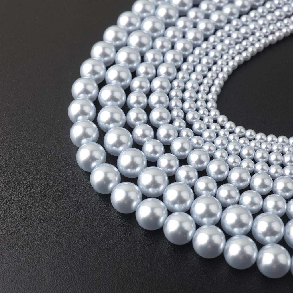Shi Jia Ice Blue Glass Pearl Beads: Round Shell for DIY Jewelry and Bracelets