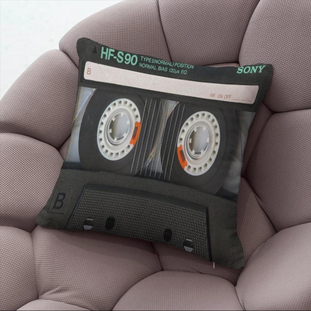 Fun Decorative Pillow With Music Tape Print Cute Kawaii Camera Sofa Bedside Cushion Short Plush Zipper PillowcaseStyle,
