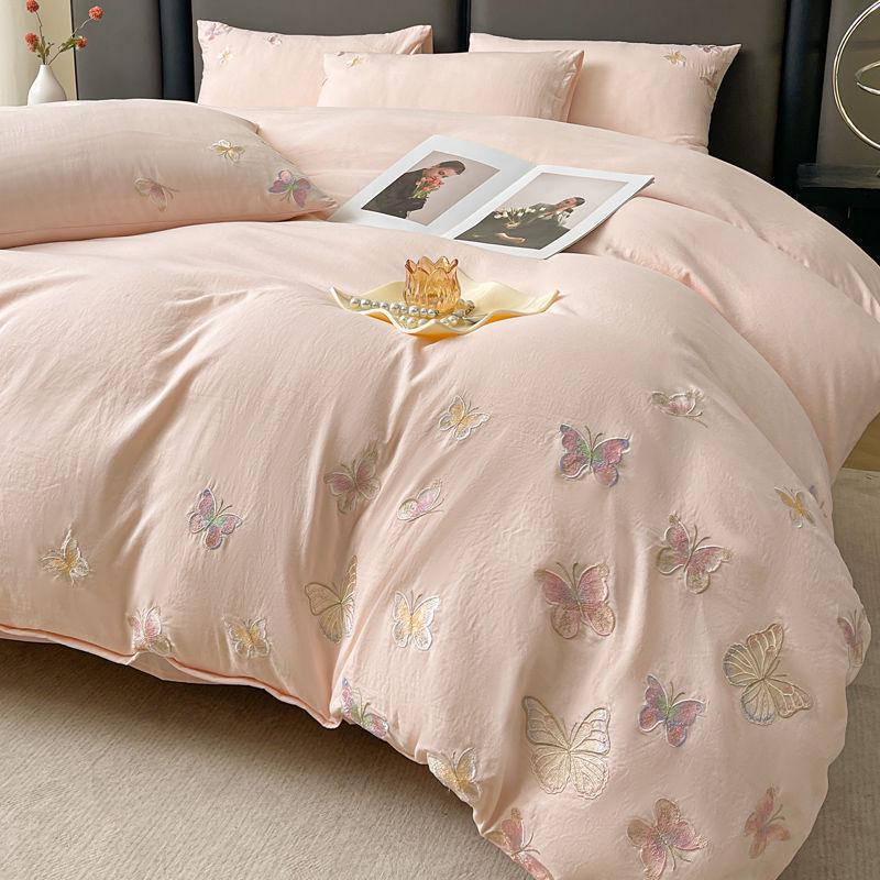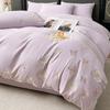 G5Z Light Luxury Embroidery Soft Cotton Bedding Set - Duvet Cover, Fitted Sheet, and Pillowcases.