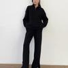 Características: Este conjunto de dos piezas incluye un chándal de manga larga de gran tamaño con hombros caídos y pantalones deportivos con cordón y dos bolsillos. La parte superior e inferior también se pueden usar por separado, lo que también es lindo y relajado.