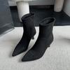 Boots high-heeled elastic socks thin-heeled rhinestone suede black thin boots increase height, pointed head shows long legs