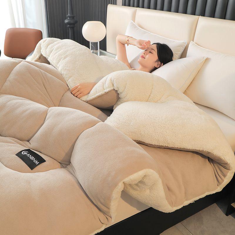 Warm Lambswool Winter Quilt & Plush Duvet Cover Set - Cozy Fleece Blanket for Dorms & Singles