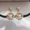 Pearl Stud Earrings - Natural Freshwater, Geometric Diamond Design, Elegant Retro Style Jewelry