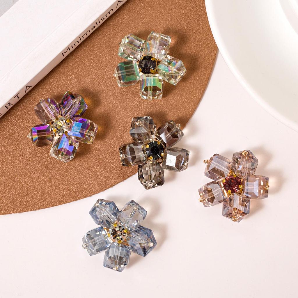 Parches de Tela con Flor de Pedrería de Cristal Coreana Cosidos a Mano para Accesorios de Bricolaje