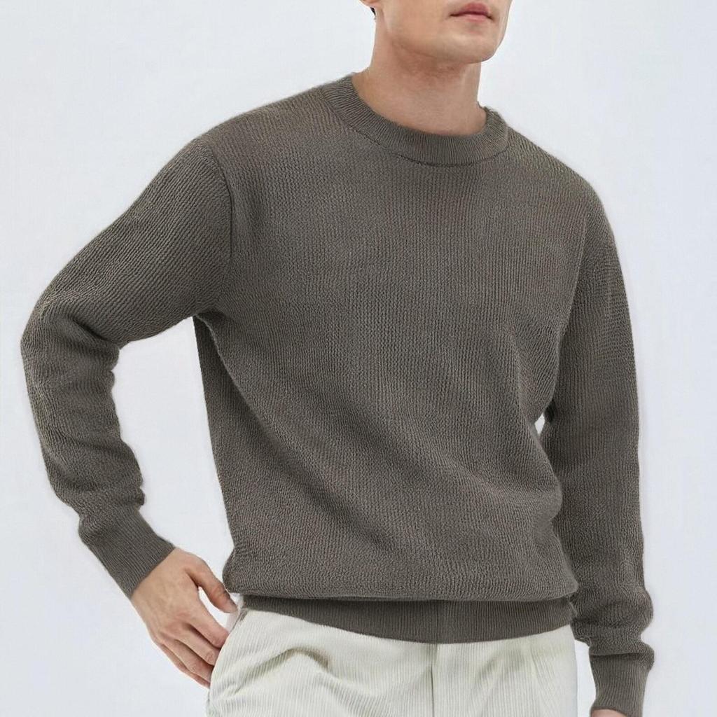 Elevate your autumn and winter wardrobe with this men's knit sweater, designed to offer a relaxed yet sophisticated look. Featuring a loose fit and a classic round neckline, this sweater combines comfort with a high-end feel. The long sleeves provide ample coverage for cooler days, while the standard thickness ensures versatility. Crafted from eco-friendly rayon and premium cotton, this sweater is not only stylish but also mindful of sustainability. Perfect for casual outings, it embodies an old money style with timeless elegance.
