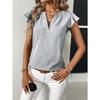 YYFS Blusas y camisas con cuello en V de manga corta con estampado de Color sólido informal de moda para mujer