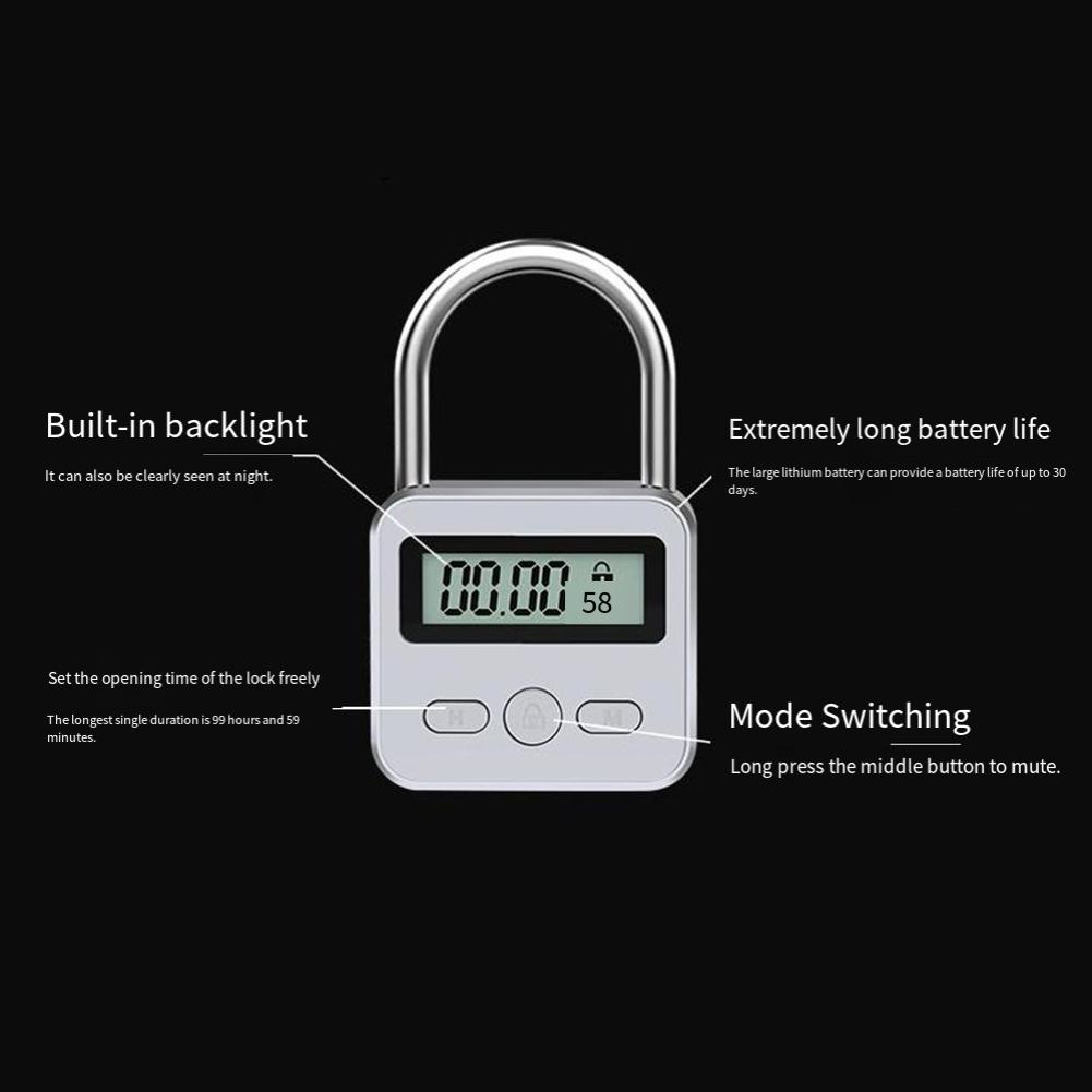 1PCS Smart Padlock Rechargeable Smart Time Lock With LCD Display And Backlight And Electronic-Timer 3.7V/200mA Battery