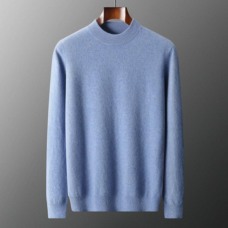Experience exceptional comfort and style this autumn and winter with our men's seamless cashmere sweater. Designed with a half-high collar and featuring a long sleeve, it offers a loose fit for ease and flexibility. Crafted from thin, high-quality cashmere, this base layer provides warmth without bulk, making it perfect for layering during cooler months. Its solid color design effortlessly complements any wardrobe, providing a timeless, sophisticated look. Available in plus sizes, this sweater is an ideal choice for those seeking a combination of luxury and practicality.