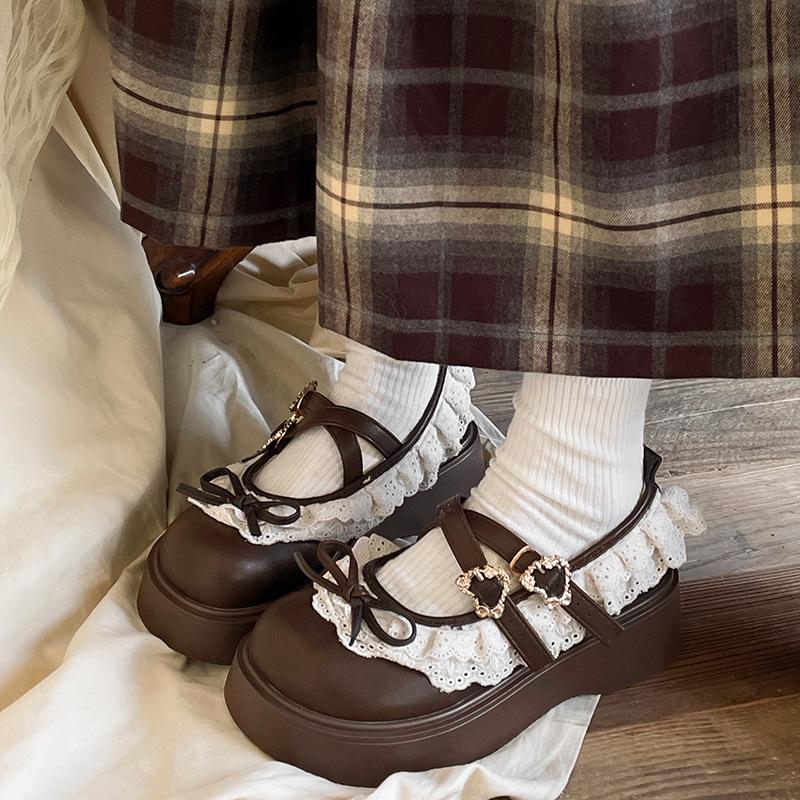 Black bow, light mouth, thick sole, small leather shoes, women's skirt, Mary Jane single shoes.