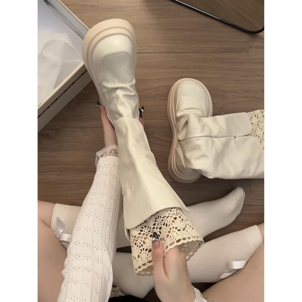 White retro British heightened platform boots women's boots autumn with skirt knight boots