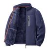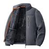 Introducing a stylish and versatile men's jacket designed for the cooler months. This jacket features a stand neckline and is crafted from a blend of polyester material and chemical fiber for the fur lining, offering durability and warmth. Despite being thin in outerwear thickness, it provides substantial warmth due to its thickened fleece interior, making it ideal for autumn and winter. The solid pattern and long sleeves add to its classic appeal, ensuring it complements any casual outdoor setting effortlessly.