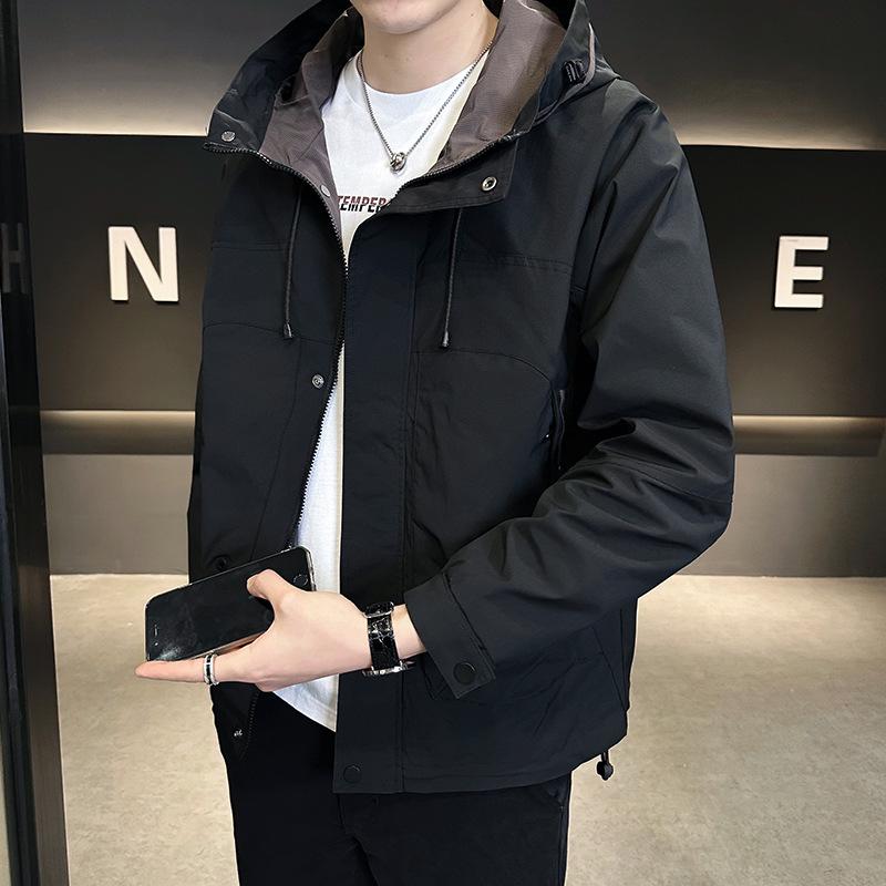 Introducing a versatile men's spring jacket designed for casual wear, featuring a comfortable hooded neckline and a solid pattern for a classic look. This jacket is crafted with thin corduroy material, providing a lightweight feel perfect for the season. The long sleeves offer additional coverage and style, making it an ideal choice for layering during cooler days. Embrace the mix of practicality and style with this timeless outerwear piece.