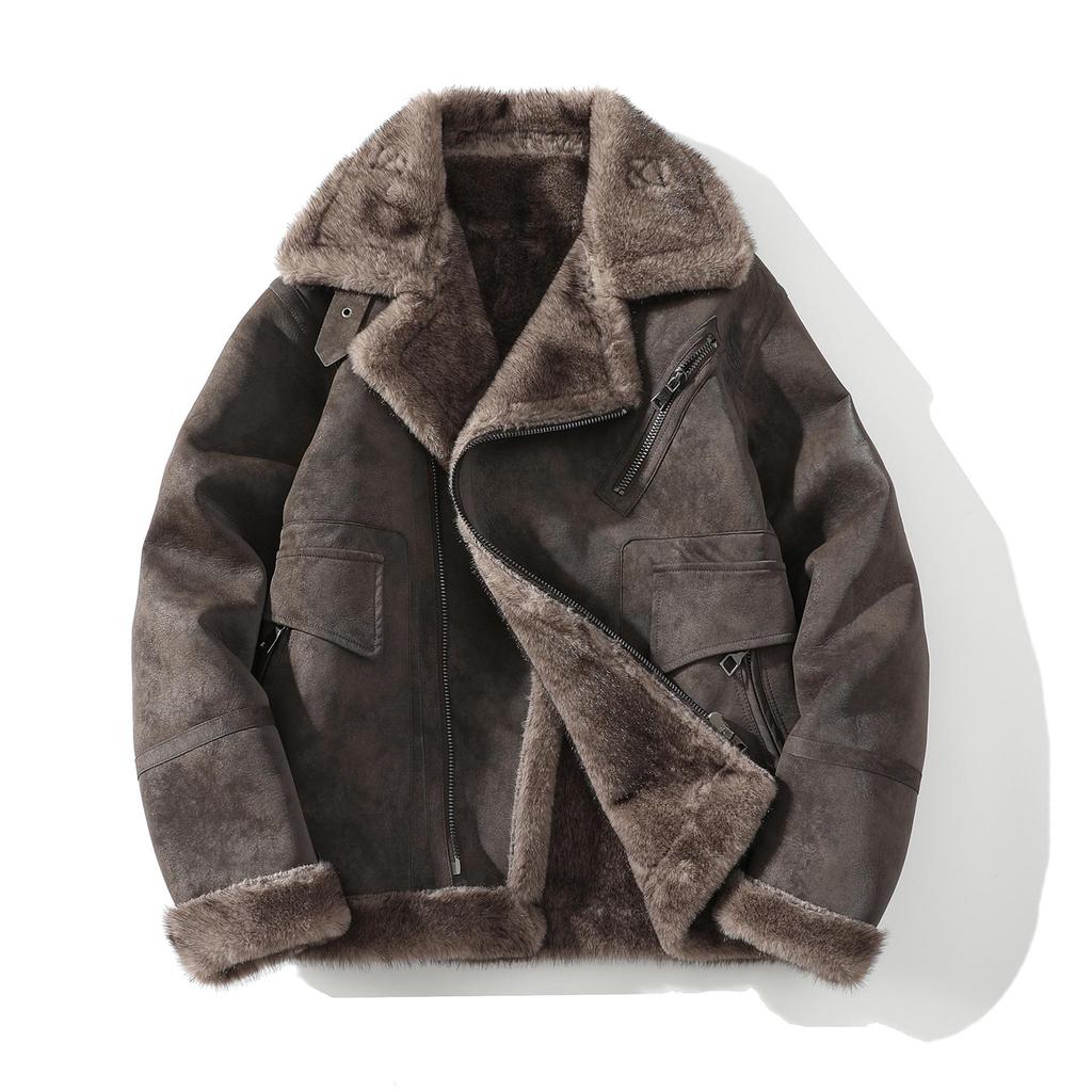 Men's Plus Size Lapel Leather and Fur Jacket - Winter Edition