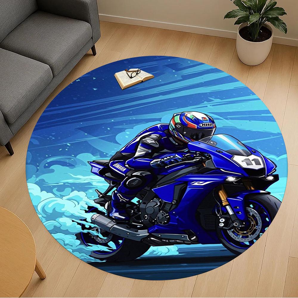 1PC Motorcycle Speed Racing Round Chair mat Area Rug - Non-Slip, Floor Mat for Office, Bedroom, home decor Christmas Gift c0528024