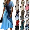 Women's Plus Size Casual Loose Fit V Neck Short Sleeve Long Dress With Pockets