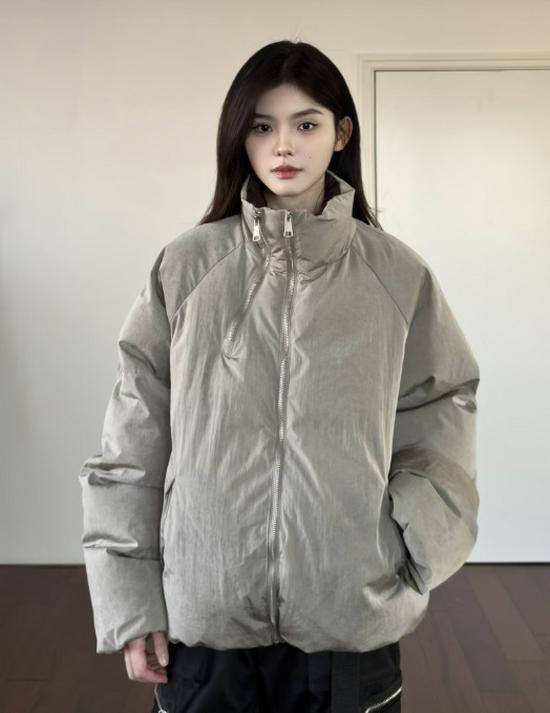 Unisex Winter-Autumn Stand Collar Puffer Jacket with Double Zipper and Trendy Design