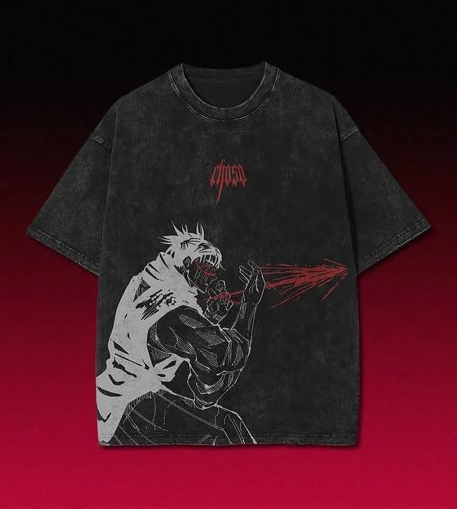 Camiseta Oversize Lavada Gráfica Y2K Jujutsu Kaisen Hombres Mujeres Casual Algodón Holgada Manga Corta Cómoda Algodón Ropa Femenina Masculina