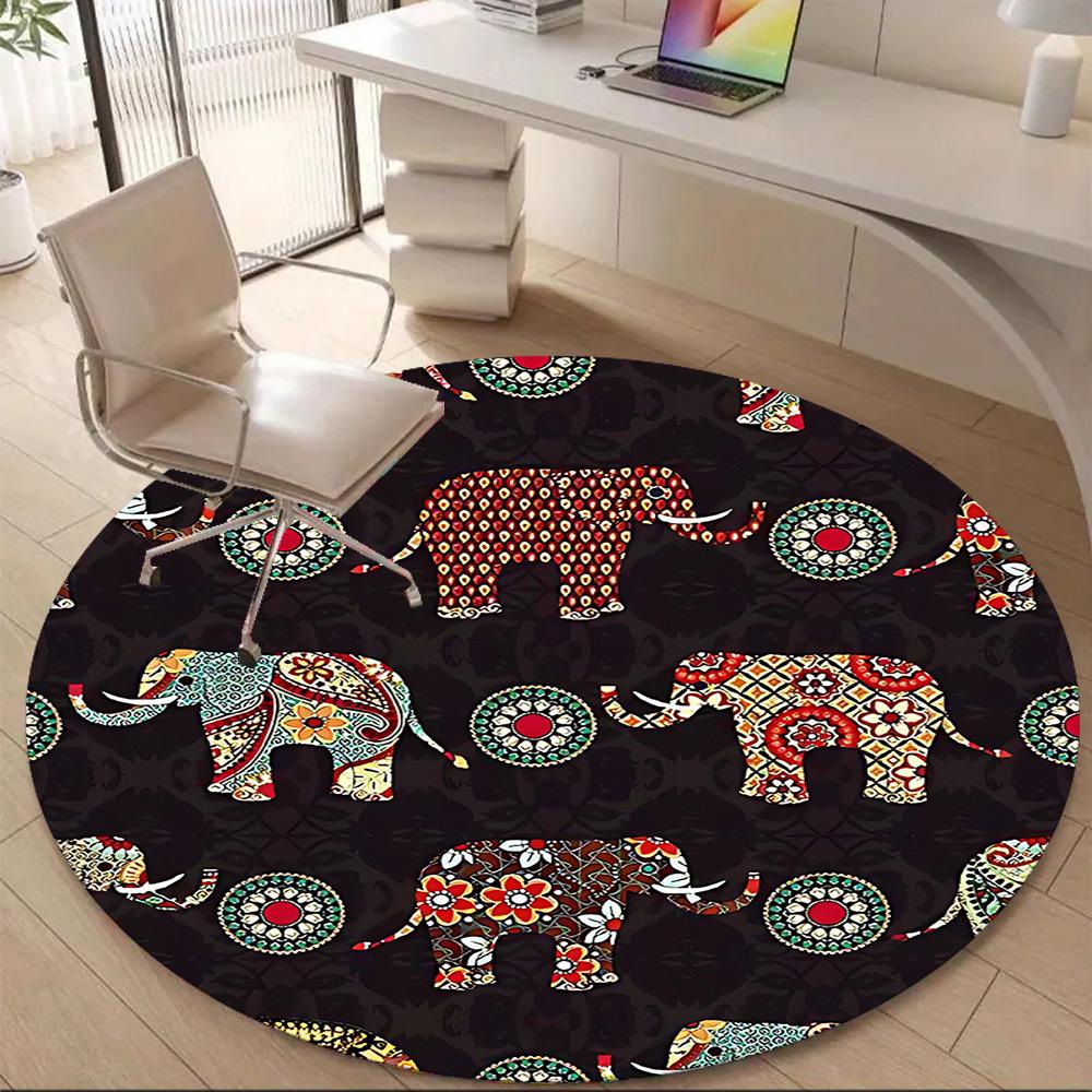 1PC Elephant Mandala Office Round Area Rug, Mat Suitable For Office, Under Office Chairs Bedroom Living Room Home Decor, Room Deco