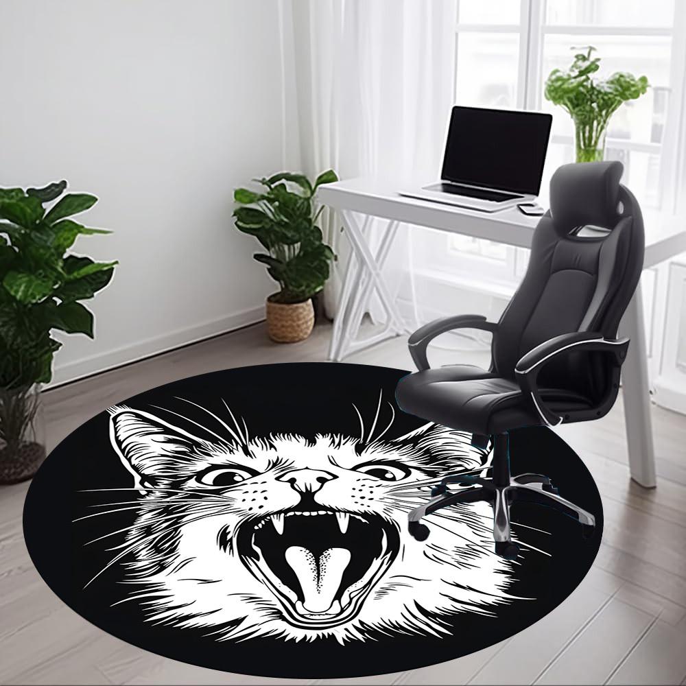 1pc Feline Expression Office Round Area Rug, Under Office Chairs Bedroom Living Room Home Decor, Room Deco, Available in Various Sizes