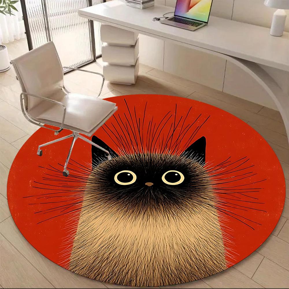 1PC Cat Whiskers Office Round Area Rug, Mat Suitable ForOffice, Under Office Chairs Bedroom Living Room Home Decor, Room Deco