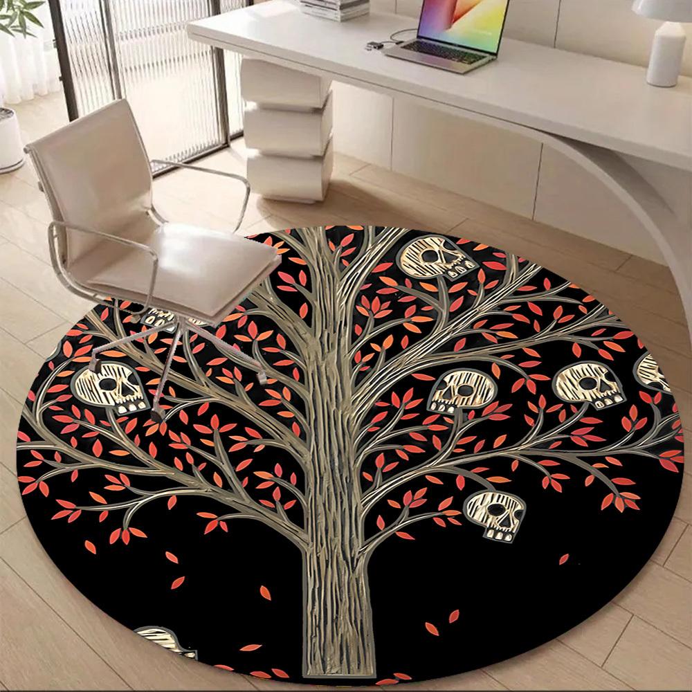 1PC Skull Tree Office Round Area Rug, Mat Suitable ForOffice, Under Office Chairs Bedroom Living Room Home Decor, Room Deco