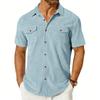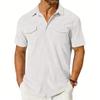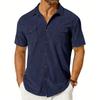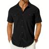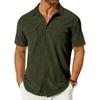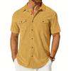 Camisa de pana americana pesada para hombre Camiseta de manga corta holgada para exteriores con solapa y bolsillos cargo