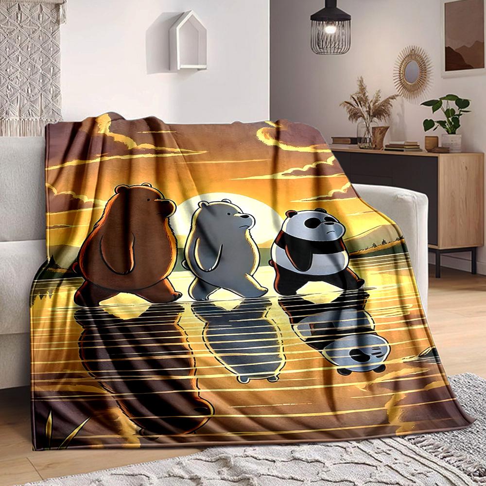 1pc We Bare Bears Flannel Throw Blanket Lightweight Soft Warm All Season Blanket for Sofa, Bed, Travel,L1028151