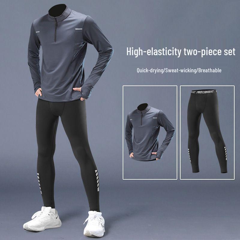 Traje Profesional de Running para Maratón para Hombre - Secado Rápido, Manga Larga, Pantalones Elásticos para Deportes de Otoño/Invierno.