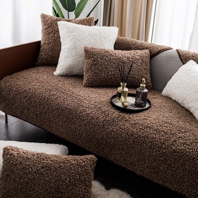 Fluffy Teddy Loops Thicken Warm Sofa Cover, Non-Slip Winter Sofa Towel for Living Room Couch Seat Cover Pet Friendly Slipcover