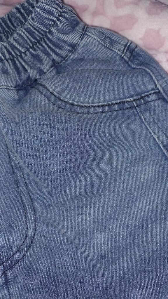 Los vaqueros están bien, es una pena que los bolsillos delanteros sean falsos, aunque en la foto el chico tiene la mano en el bolsillo, resulta un engaño, ¡qué pena☹️! Hacia abajo son un poco estrechos, no acampanados.
