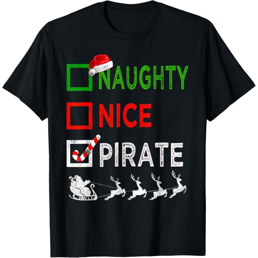 Naughty Nice Pirate Christmas Pajamas Funny Santa Hat Xmas T-Shirt