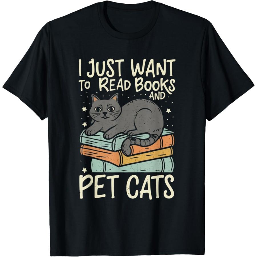 Retro I Just Want To Read Books And Pet Cats Cat Men Women Kids T-Shirt