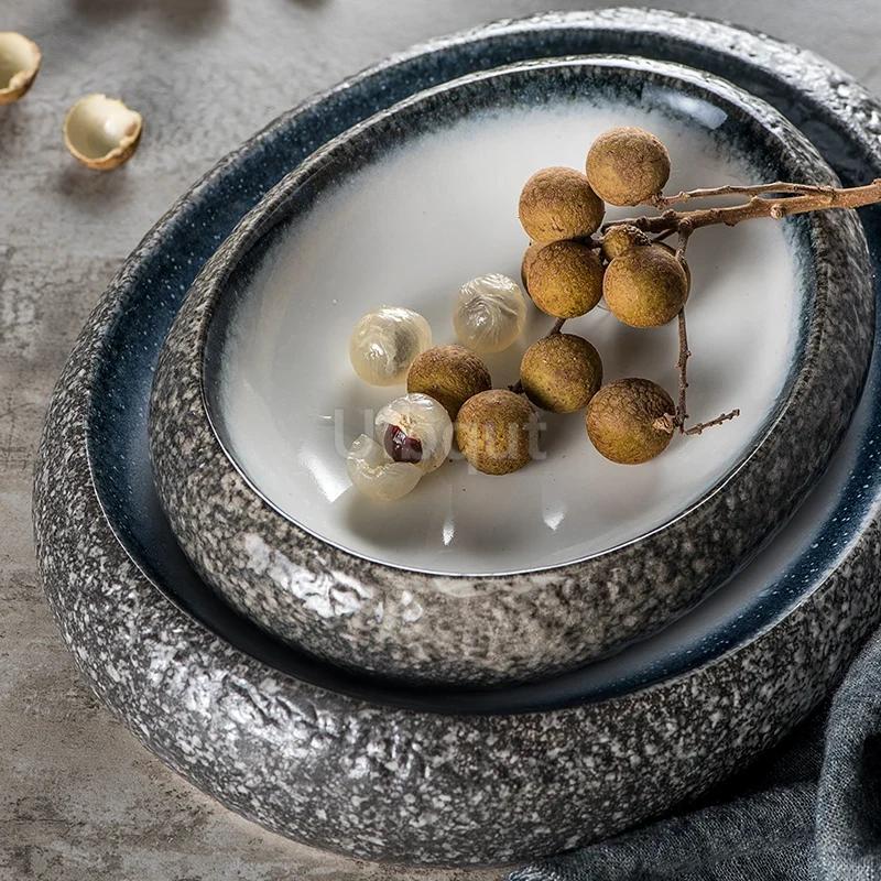 seafood Creative Stone Pattern Ceramic Bowl Thick Edge Sushi Bowl Sashimi Dessert Bowls Soup Bowls Restaurant Special Tableware