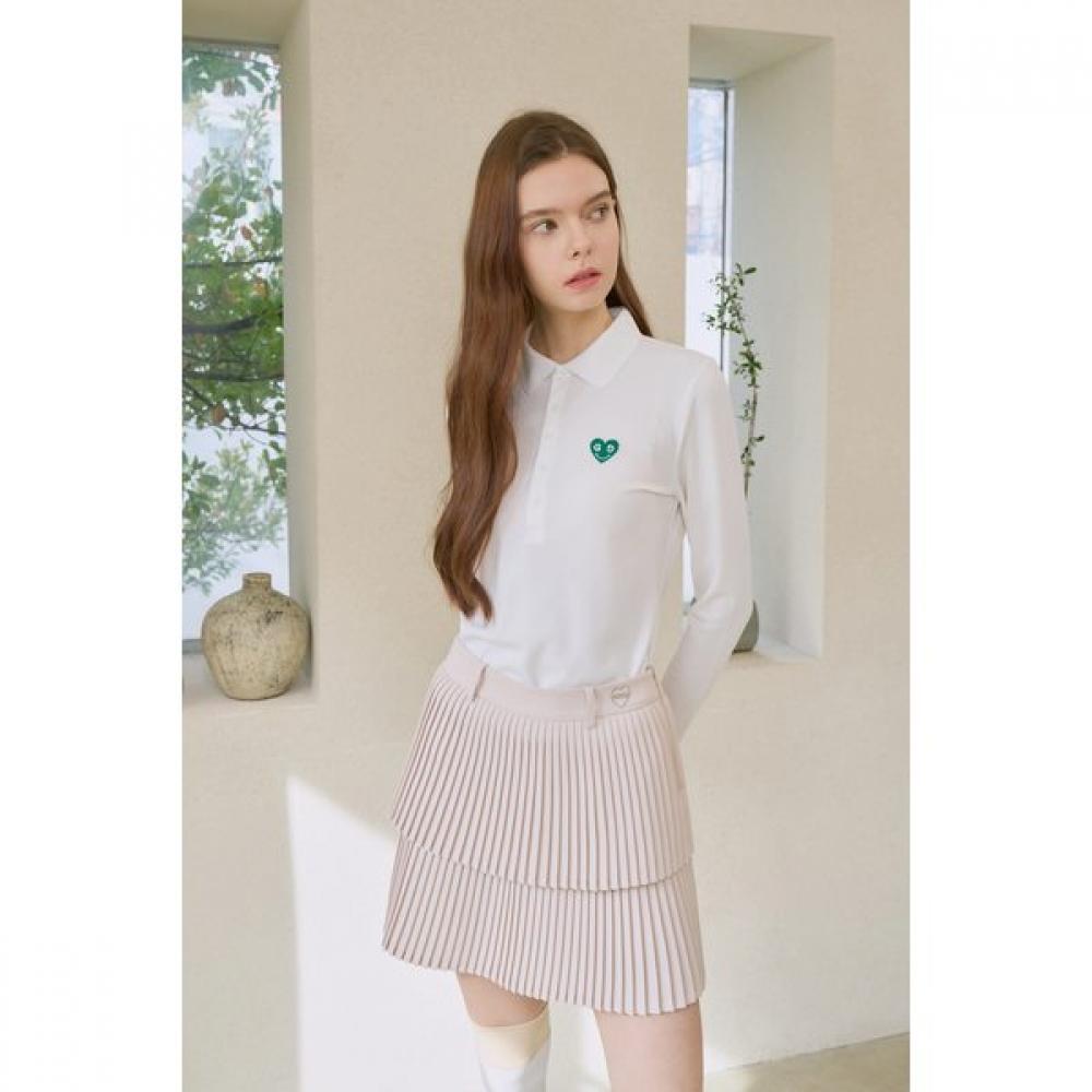 The GoXo Smile Heart Basic Pique T-shirt features a classic design accented with the brand's signature character badge. It's equipped with front buttons for easy opening and closing, and it includes hidden buttons to prevent the front from gaping.