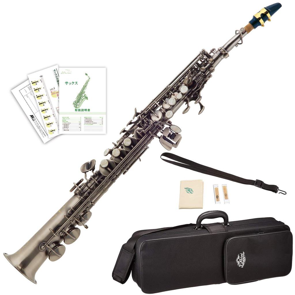 Set contents: Soprano saxophone, semi-hard case, mouthpiece (with cap and ligature), reeds, instruction manual, fingering chart, warranty card, strap, cleaning cloth