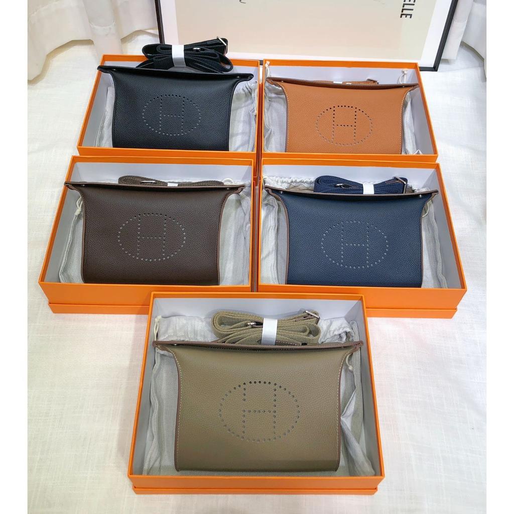 High-end versatile first-layer cowhide bag, dinner plate bag, genuine leather unisex bag, casual shoulder messenger bag.