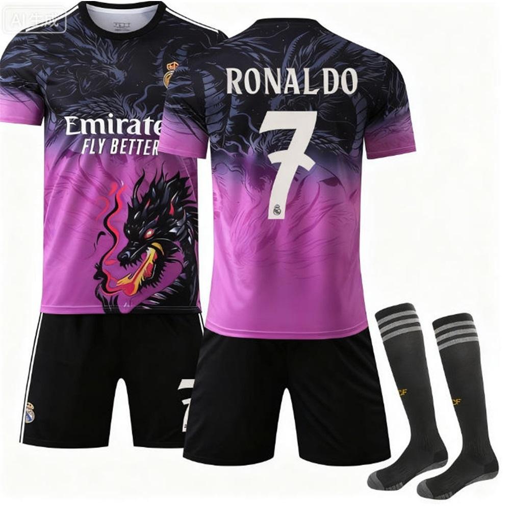 Kits de Fútbol Personalizados con Nombre para Adolescentes, Niños y Adultos 24/25 Real Madrid Dragón Morado #7 RONALDO Conjunto de Camiseta de Entrenamiento Deportivo con Calcetines