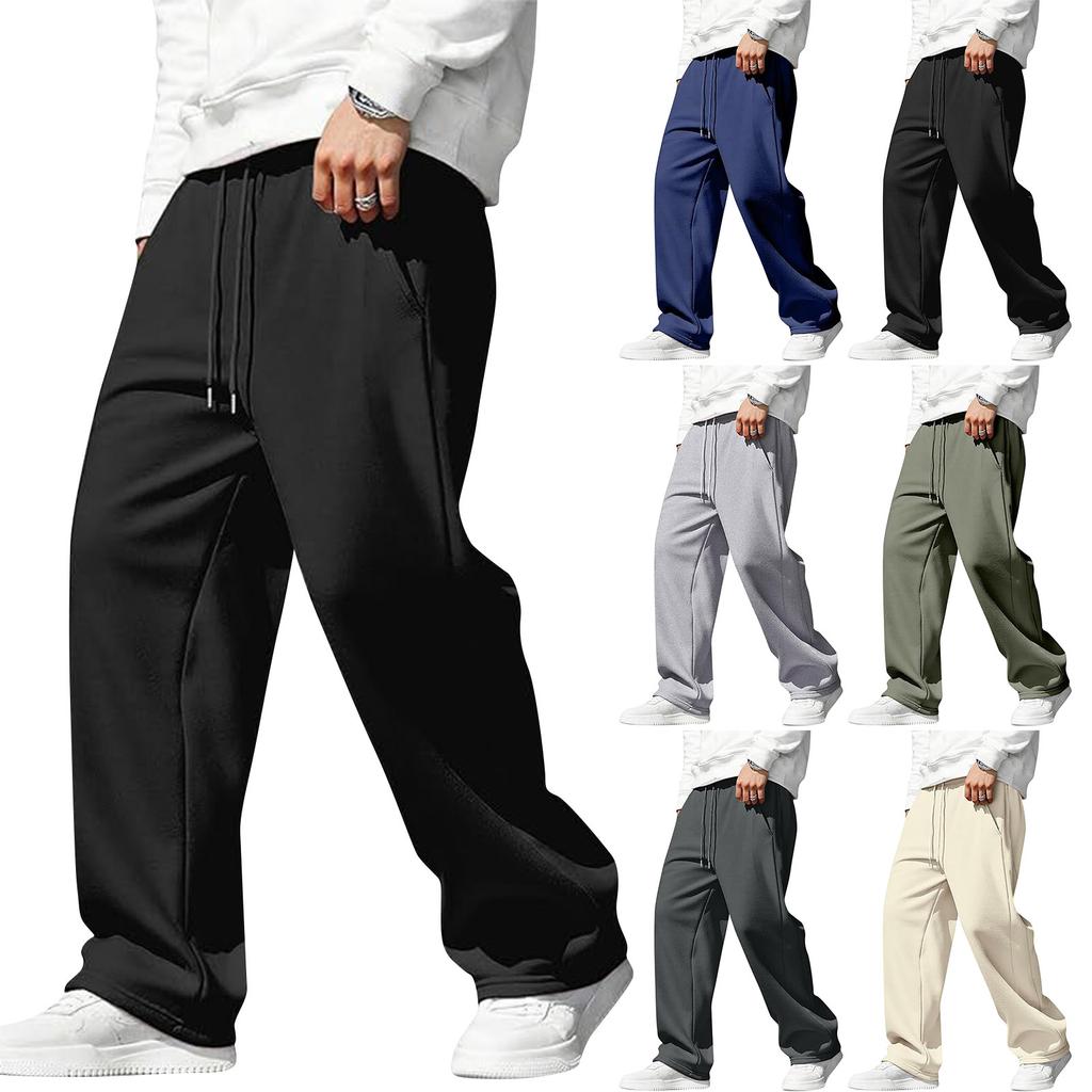 Pantalones de Hombre con Bolsillos y Cordón Pantalones Deportivos Casuales de Pierna Recta