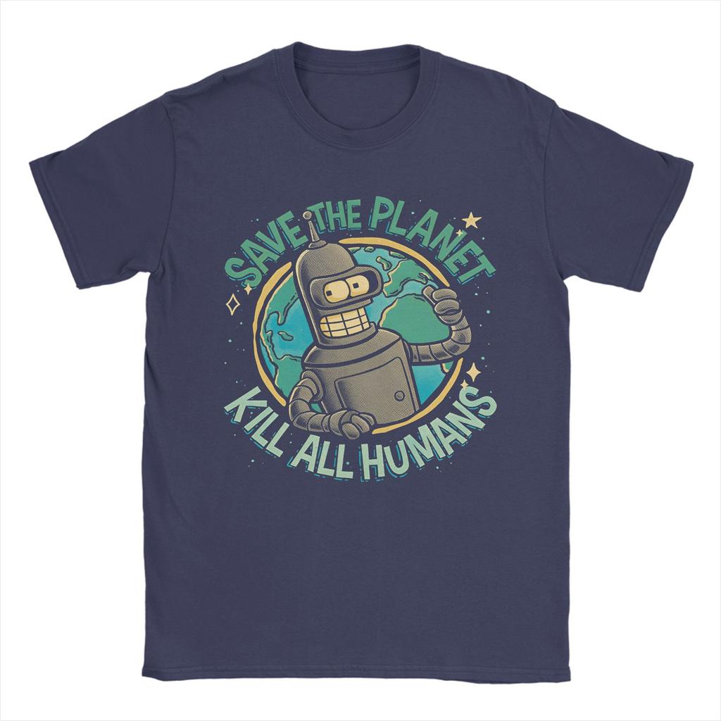 Camiseta para Hombre Bendered Salva el Planeta Mata a Todos los Humanos Camiseta de Dibujos Animados Informal Camiseta de Cuello Redondo Algodón Merchandising de Verano