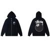 Presentando una mezcla clásica de estilo y comodidad, esta sudadera presenta un logotipo único de letra bordada que añade un toque de estilo retro.. Hecho de material de algodón de alta calidad, su cuello alto y mangas largas ofrecen un ajuste acogedor pero moderno.. Diseñada con una silueta holgada, esta prenda fusiona sin esfuerzo la estética de la moda urbana con la ropa informal.. La sudadera se realza aún más con una cremallera y una distintiva aplicación en la espalda, lo que la convierte en un complemento esencial para cualquier guardarropa elegante.