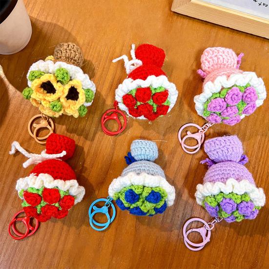 Portable Keychain Hand-Crocheted Wool Rose Petal Keychain Pendant Bags Mini Bouquet Decoration Accessory Backpacks