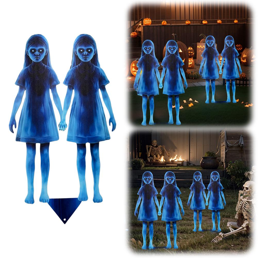 1 PC Iron Yard Stakes Scary Garden Ghost Stakes Spiked Piles Twin Ghosts Garden Stake Yard For Lawn Patio Haunted House