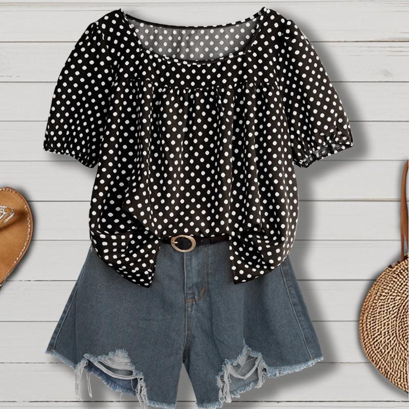 New Round-neck Blouse - Elegant Business Casual Pullover with Polka Dots - Large Size Women's Shirt