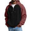 Men's Heavyweight Color Block Hooded Sweatshirt Jacket for Autumn/Winter