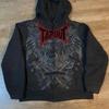 Embrace a blend of retro and gothic aesthetics with this stylish zipper hoodie, perfect for transitioning between spring and autumn. Designed with a stand neckline and long sleeves, it offers a modern take on classic fashion. The hoodie is crafted from thin polyester material, with polyester fiber fur ensuring comfort and durability. Its loose fit provides ease of movement, while the intricate printed decoration adds a unique artistic touch. Ideal for those who appreciate fashion with a distinct edge, this hoodie flawlessly combines functionality with an eye-catching design.