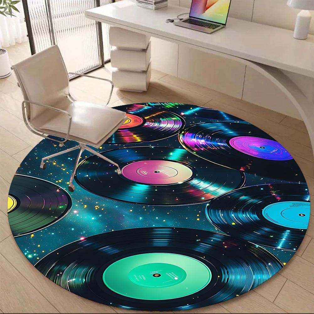 1pc Vinyl Records Cosmic Office Round Area Rug, Mat Suitable ForOffice, Under Office Chairs Bedroom Living Room Home Decor, Room Deco
