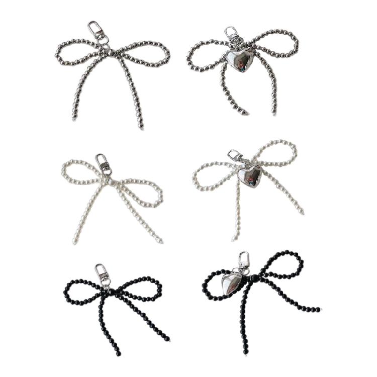 Fashionable Bead Bowknot Phone Charm Keychain Cellphone Chain Stylish Pendant Fashionable Bowknot Keychain Accessory